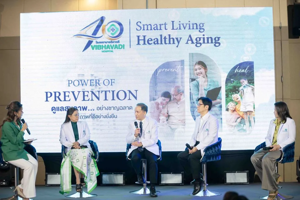 นอกจากนี้แล้ว ภายในงานฉลองครบรอบ 40 ปี ยังได้เปิดเวทีเสวนาให้ความรู้ภายใต้หัวข้อ “Smart Living, Healthy Aging” นำโดยทีมแพทย์ผู้เชียวชาญในแต่ละด้าน ขึ้นพูดคุยประกอบด้วย พญ. กานดา กู้เมือง แพทย์เวชศาสตร์ป้องกัน แขนงเวชศาสตร์วิถีชีวิต นพ.วรงค์ ลาภานันต์ รองผู้อำนวยการโรงพยาบาลวิภาวดี แพทย์อายุรศาสตร์โรคหัวใจ รศ.พิเศษ นพ.เมธี วงศ์ศิริสุวรรณ แพทย์เฉพาะทางด้านประสาทศัลยศาสตร์ และ พญ.ศุภราเชาว์ปรีชา จิตแพทย์ด้าน CBT เด็กและวัยรุ่น ขึ้นเสวนาในมุมมองต่างๆ อาทิ The Power of Prevention: การป้องกันเชิงรุกตาม Life Style (Prevent) เป็นการดูแลสุขภาพตามวิถีชีวิตเพื่อแนะนำการปรับพฤติกรรมให้มีสุขภาพที่ดีขึ้น Specialized Medical Centers: ศูนย์เฉพาะทาง (Treat) เมื่อก้าวสู่การเป็น “ผู้ป่วย” การรักษาต้องอาศัยศูนย์การแพทย์เฉพาะทาง ด้วยเทคโนโลยีที่มีมาตรฐานและทีมแพทย์เฉพาะทางรวมถึงมุมมองเรื่องแพทย์เฉพาะทางด้านประสาทศัลยศาสตร์ (Treat) และMental Wellness & Balance (Heal)